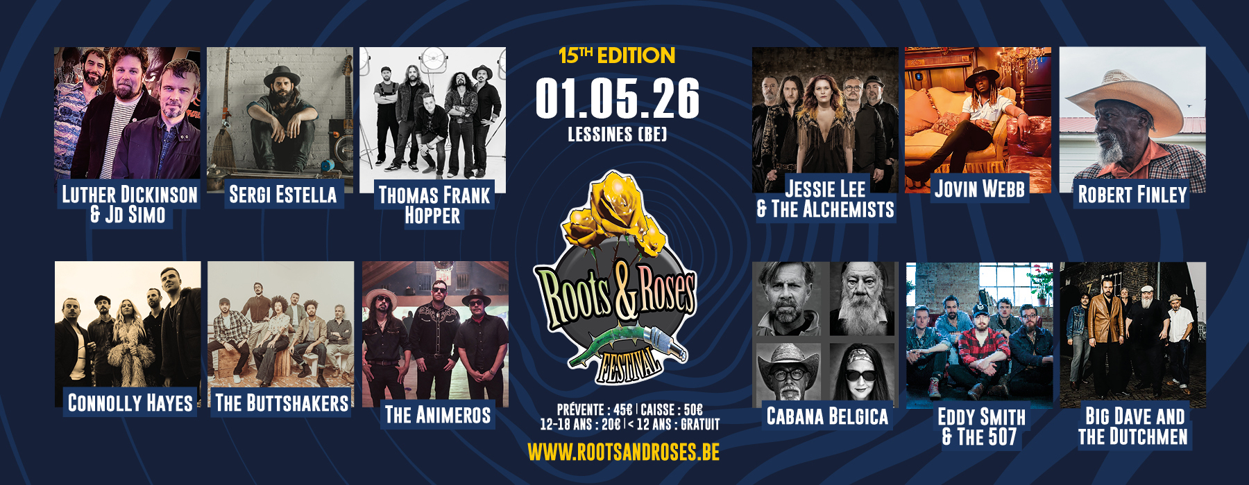 Luther Dickinson & JD SIMO – Robert Finley – The Buttshakers – Thomas Frank Hopper – Eddy Smith & the 507 – Jessie Lee & the Alchemists – Sergi Estella one man band – Big Dave & the Dutchmen – The Animeros – Cabana Belgicana – Connolly Hayes – Jovin Webb